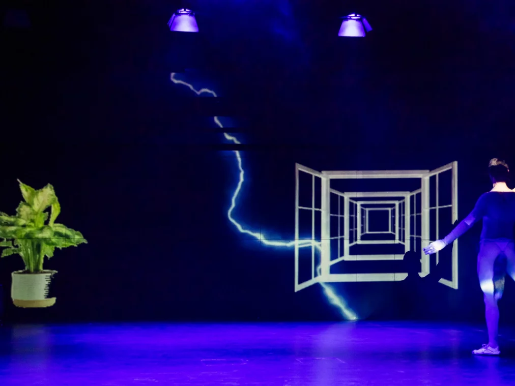 Das Theater wird zu einem häuslichen Raum, den ein augmentiertes Wesen bewohnt – wild, anthropoid, maschinenähnlich. Online- und Offline-Interfaces fungieren zugleich als Hinter- und Vordergründe und rahmen eine Choreografie, die das Fleisch überschreitet. Zwischen Beobachten und Beobachtet-Werden, zwischen Alltäglichem und Spektakulärem, offenbart der ausgestellte Körper Fragilität, Monstrosität und Exzess.