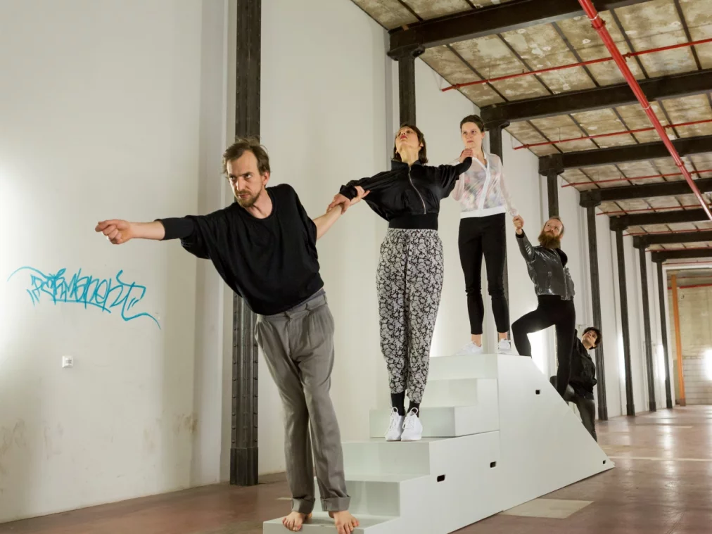 IDEA Hermann Heisig BY AND WITH Pieter Ampe, Jessica Batut, Hermann Heisig, Elpida Orfanidou, Alma Toaspern/Ixchel Mendoza Hernandez STAGE, COSTUME Marie Gersten-berger MUSIC Gunnar Wendel aka Kassem Mosse LIGHT Thomas Achtner PRODUCTION Susanne Ogan